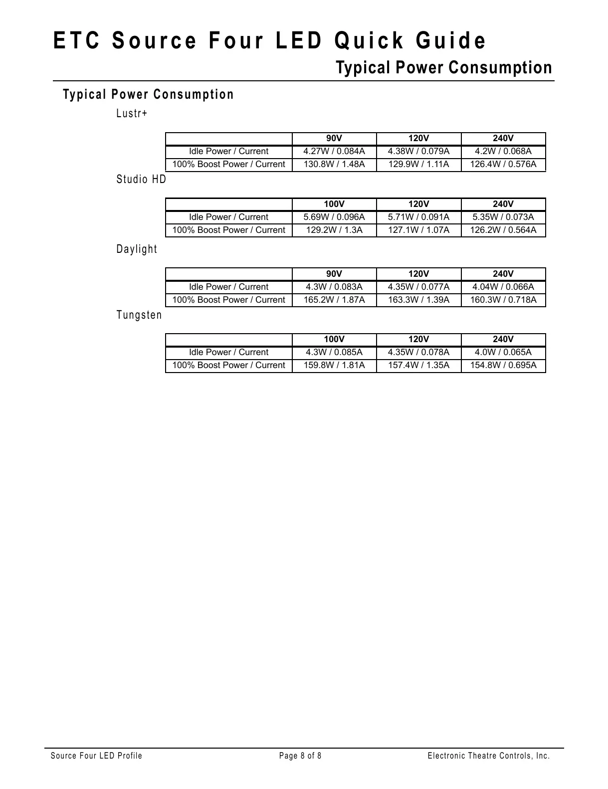 Source Four LED Profile Page 8 of 8 Electronic Theatre Controls, Inc.