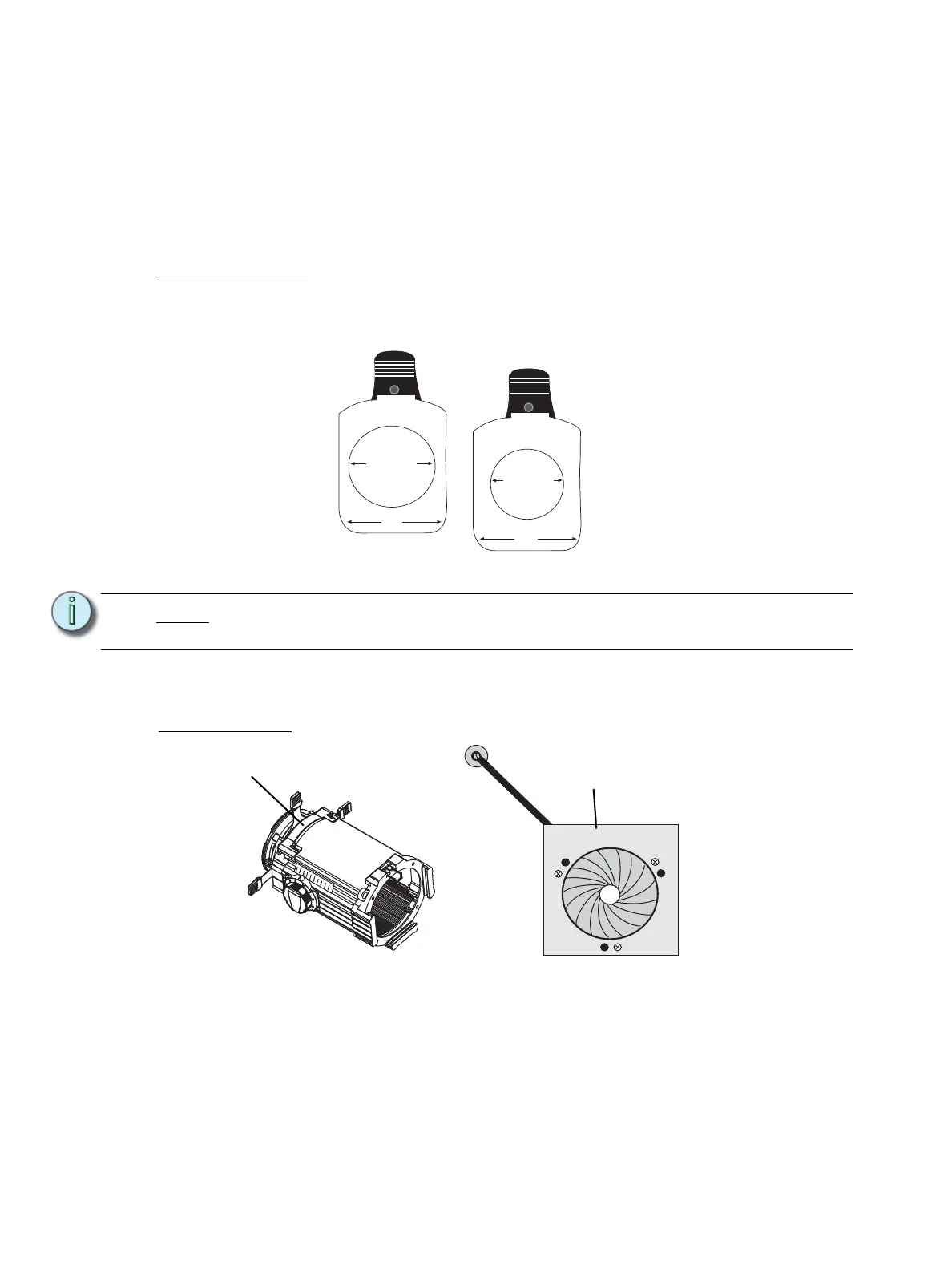 Step 3: Insert the iris or motorized pattern device. For an iris, install the flat side toward the
