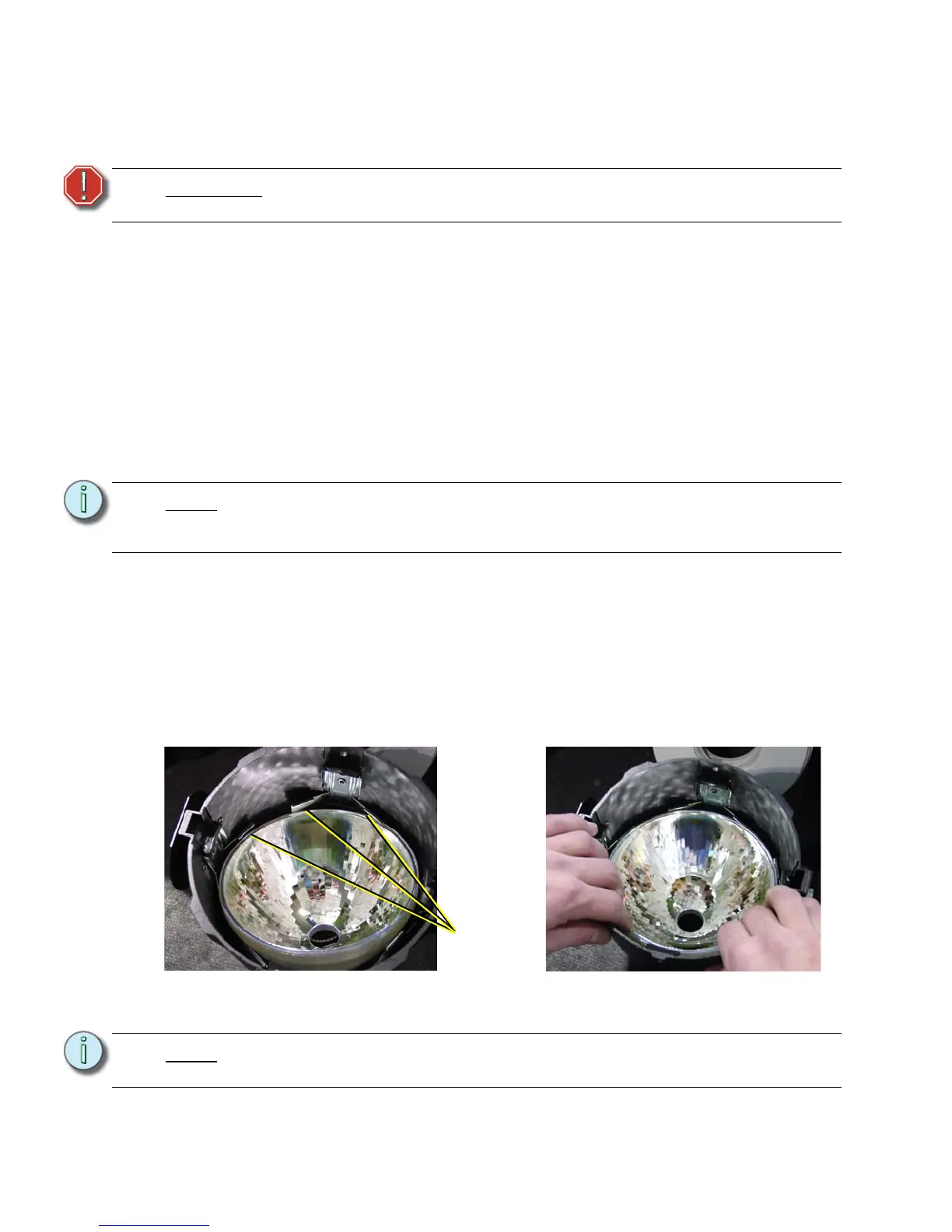 This procedure may crack or break the reflector. Always wear gloves, safety