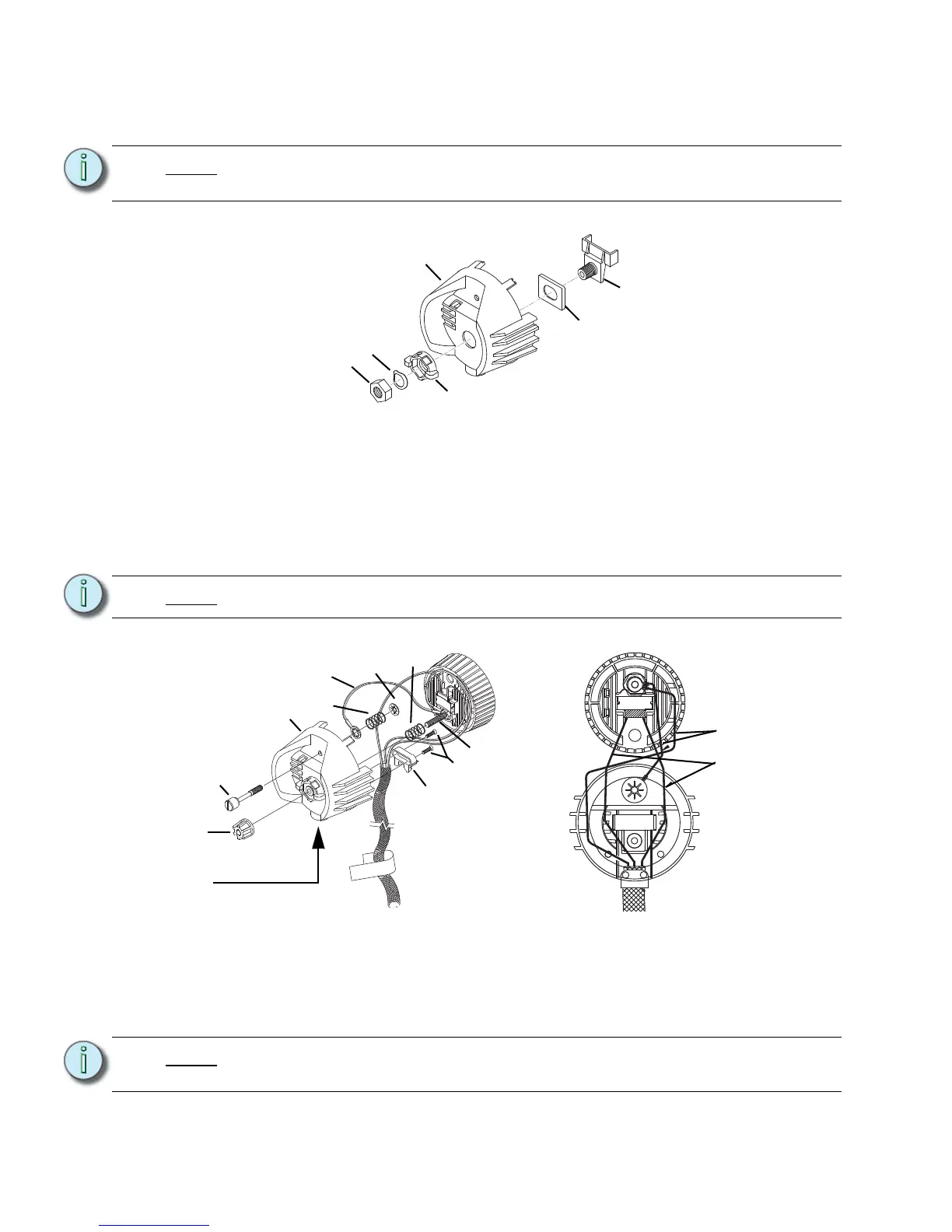 Step 11: Install the shorter green ground wire (18) onto the screw. The prongs on the