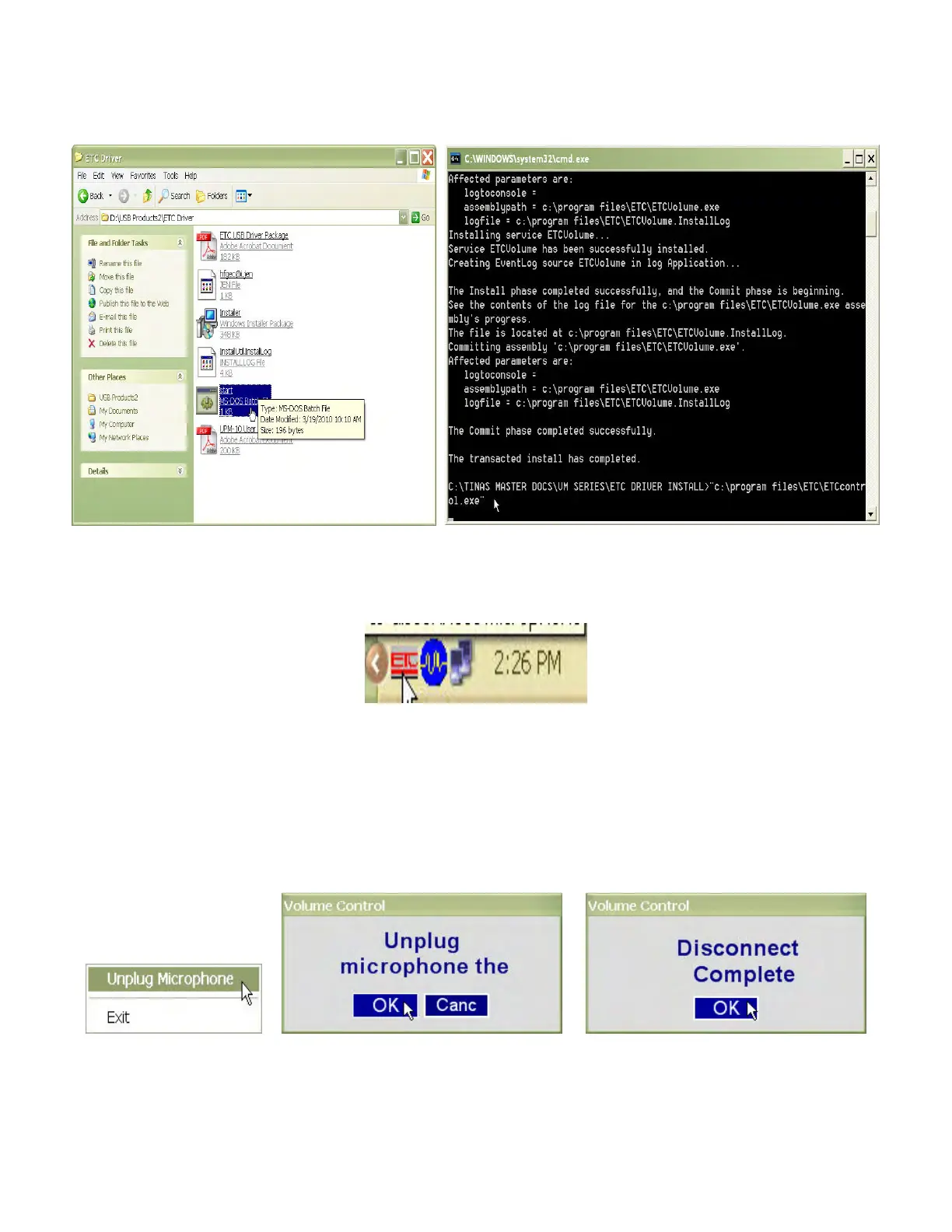 The ETC Volume Control service will automatically restart the next time a microphone is plugged