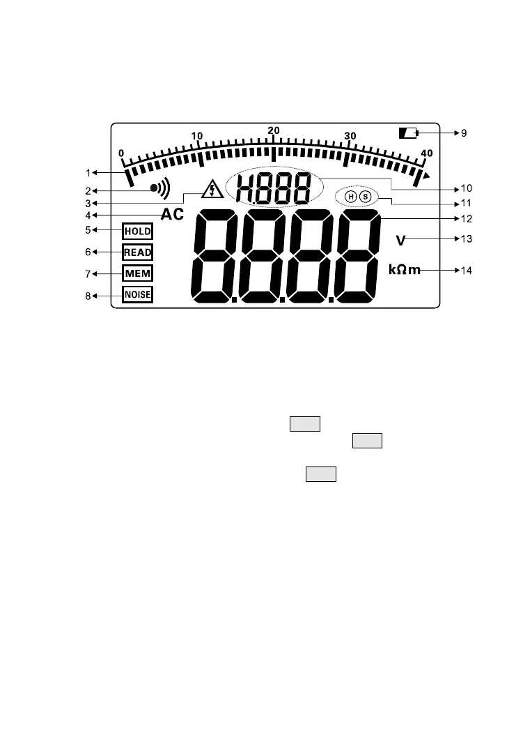 3. Exceed voltage symbol (Display when the measured voltage exceed