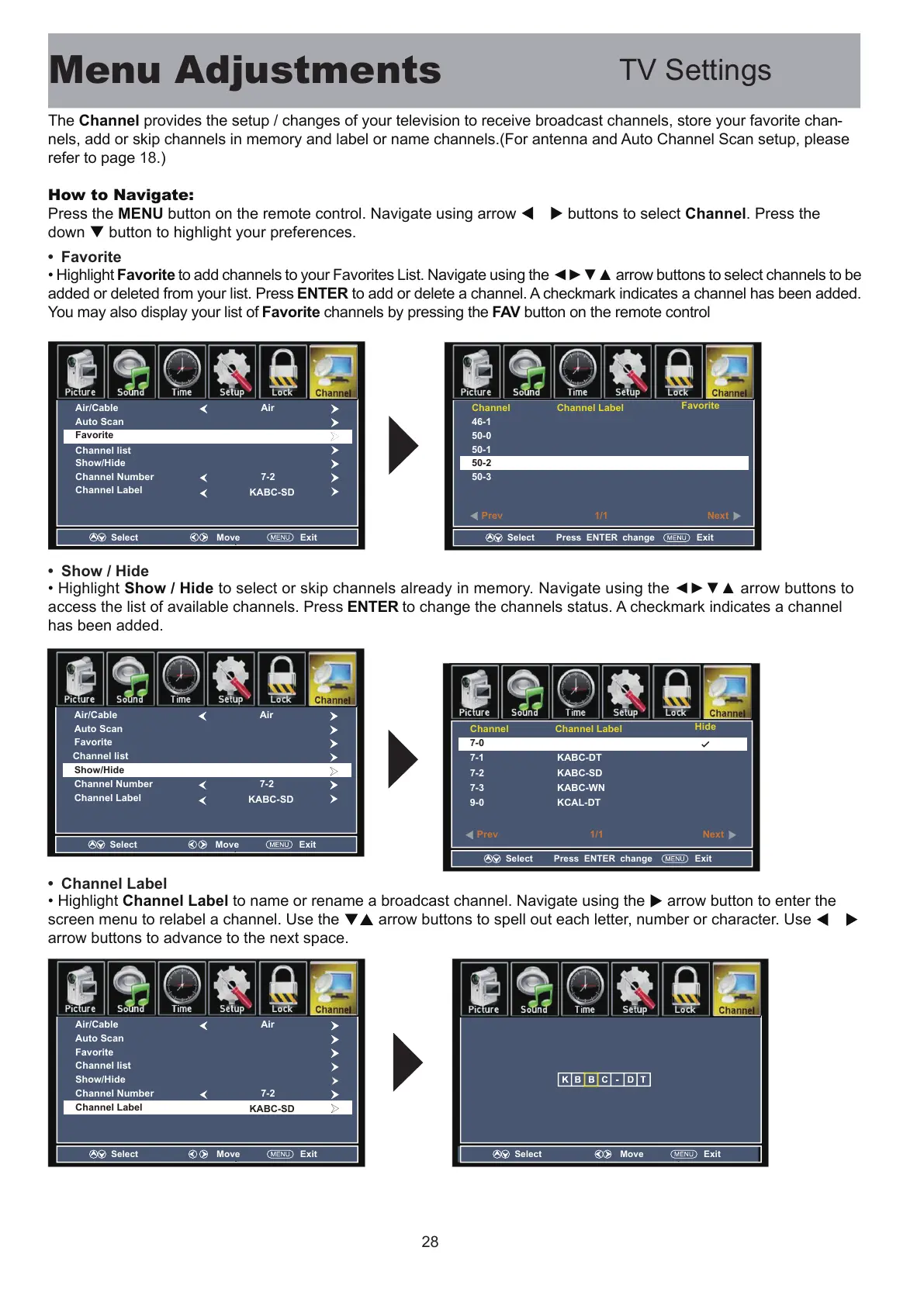 nels, add or skip channels in memory and label or name channels.(For antenna and Auto Channel Scan setup, please