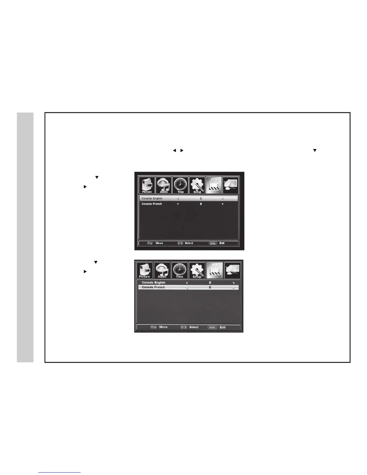 In the PARENTAL menu, you may block television and movie programming based on Canadian TV and movie rating guidelines. To gain access
