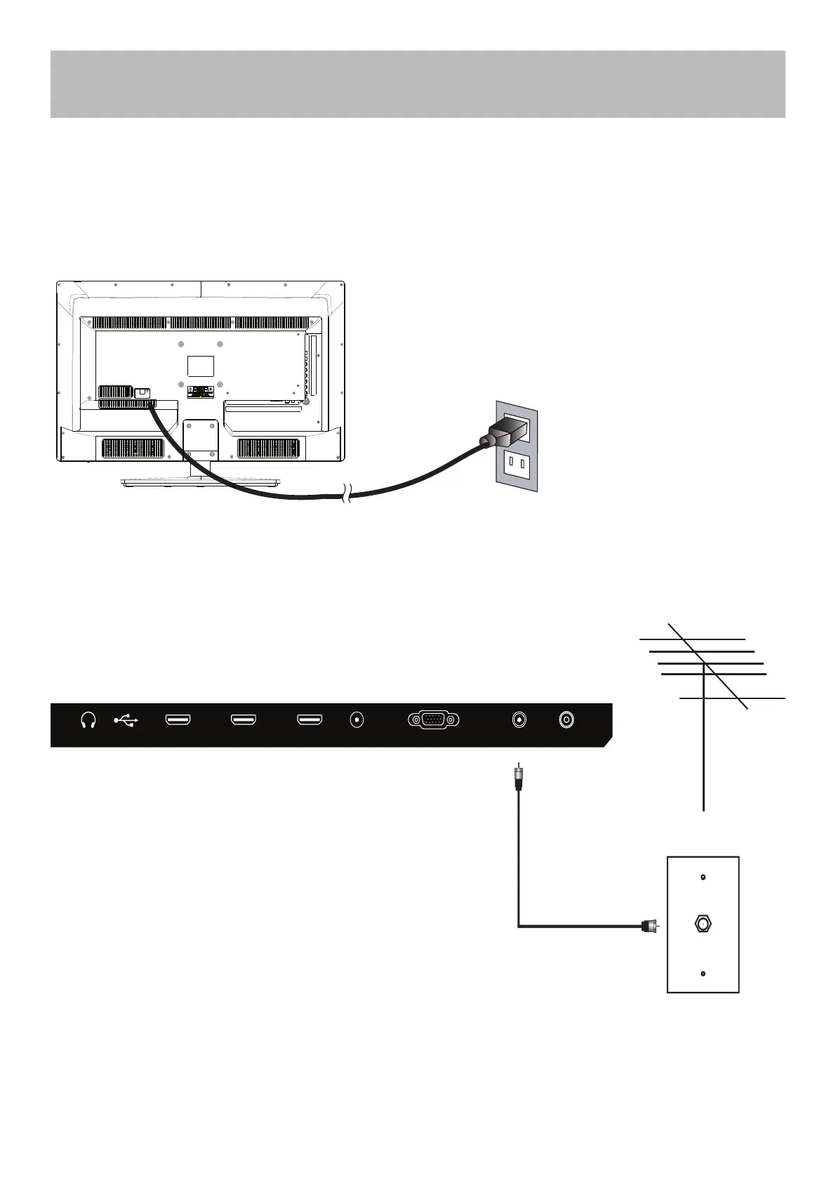 • Connect the power cord to a properly grounded AC outlet, then to your TV.