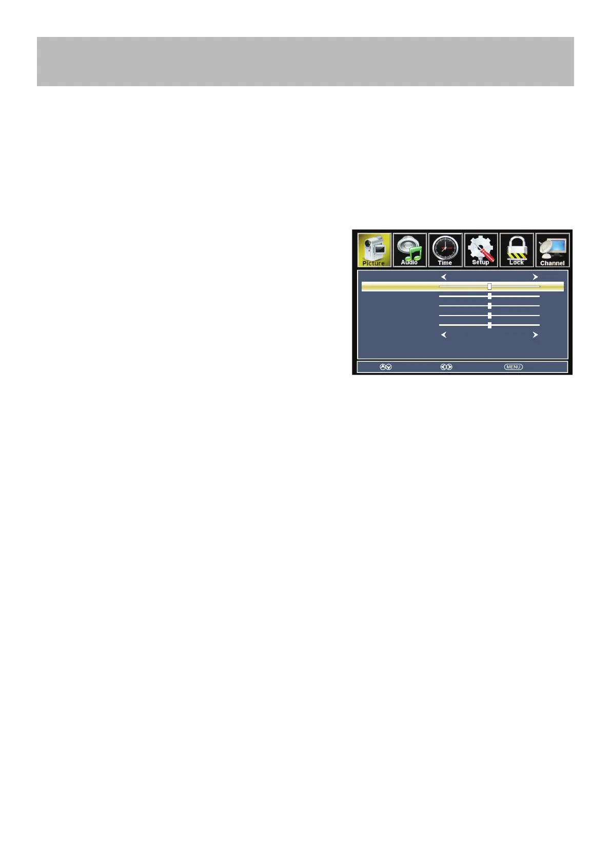 The Picture menu offers options to enhance and rene the picture displayed on your TV based on ambient room light