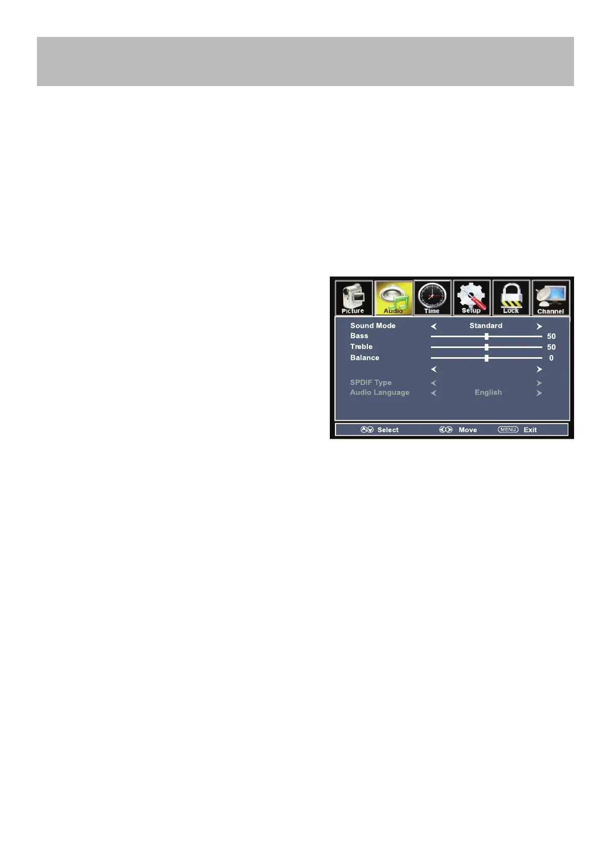 Press down arrow button to highlight Audio Lan-