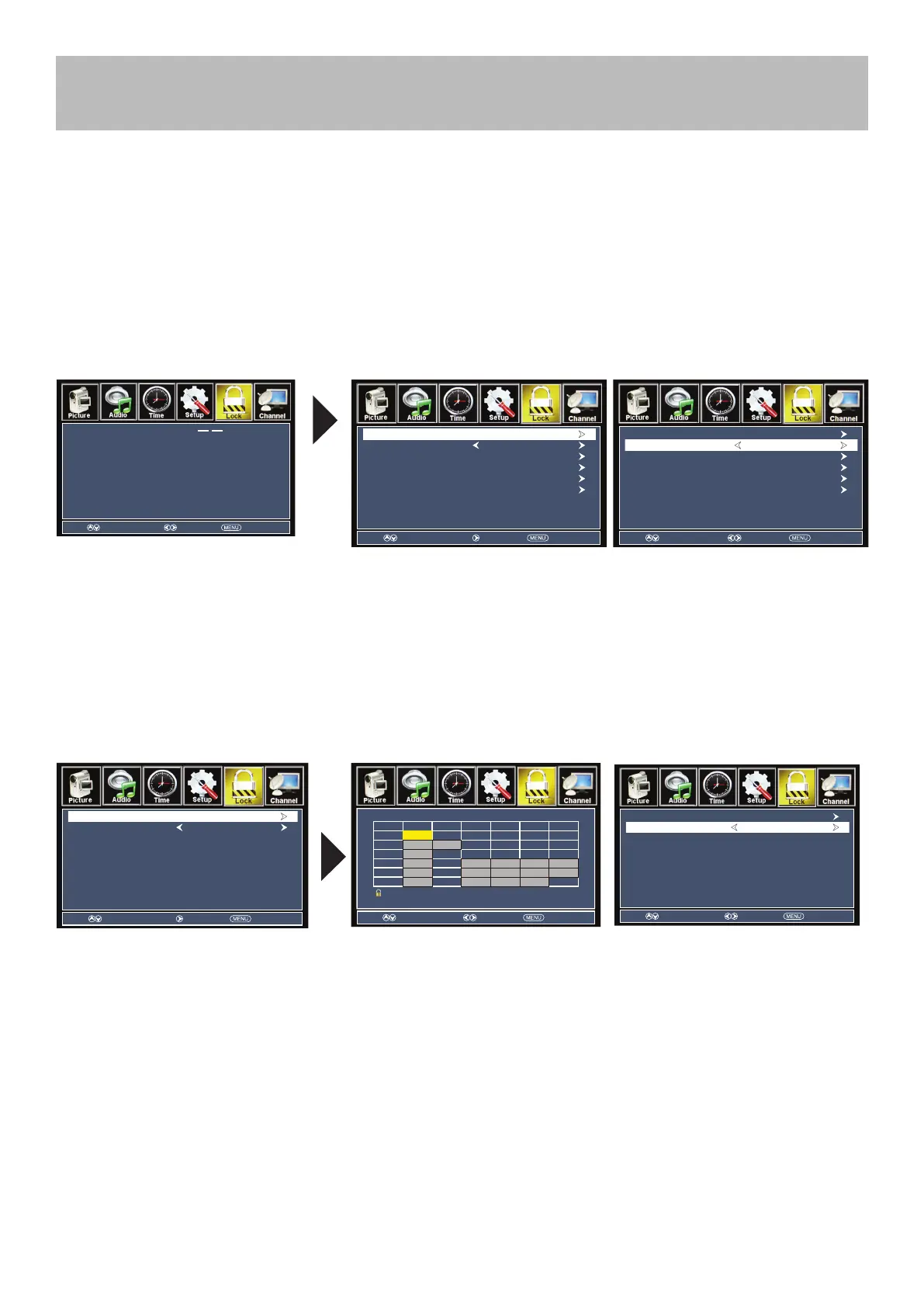 In the Lock menu, you may block television and movie programming based on TV ratings and Motion Picture Association