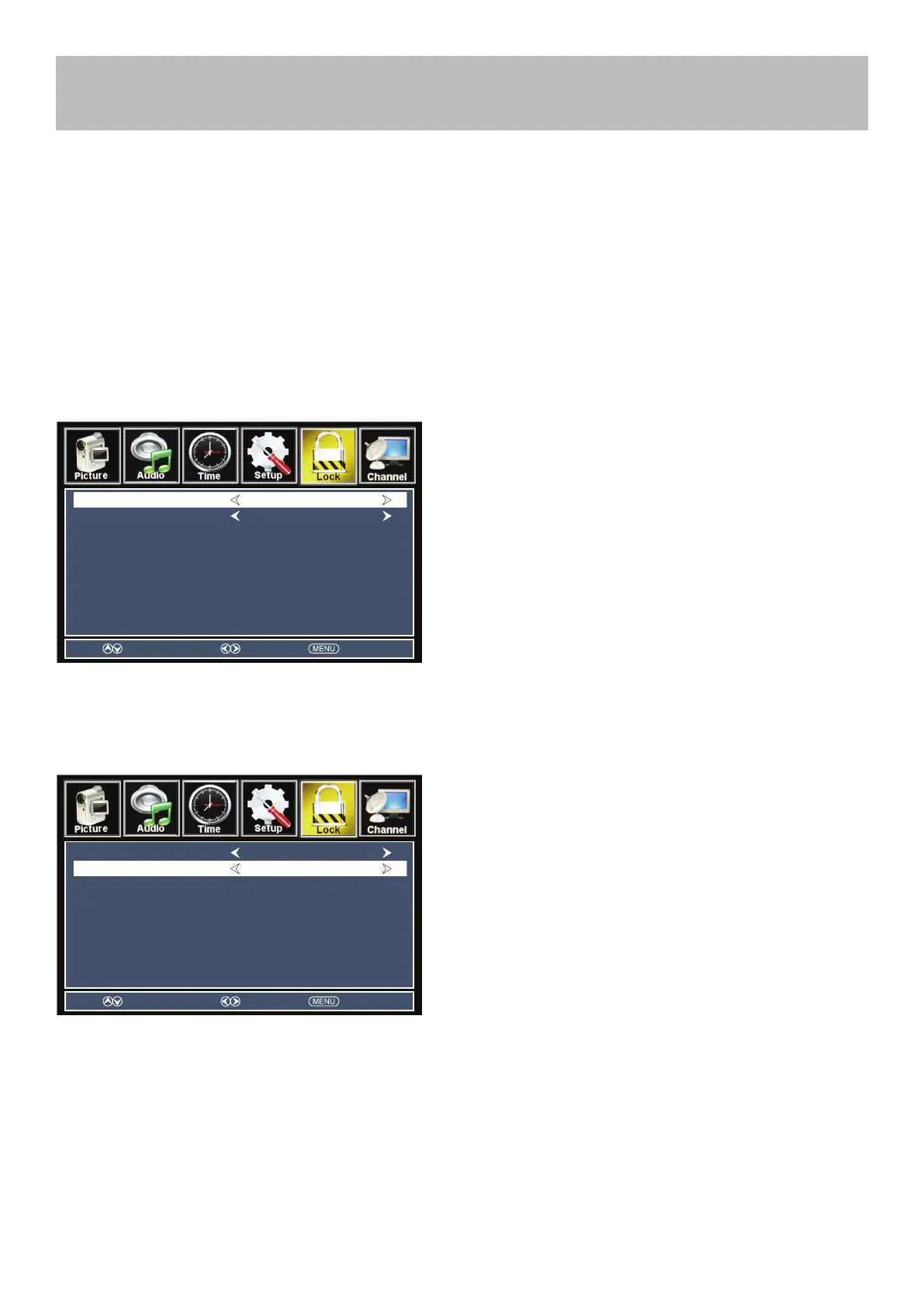 Press the MENU button on the remote control. Navigate using arrow buttons to select Lock. Gain access to