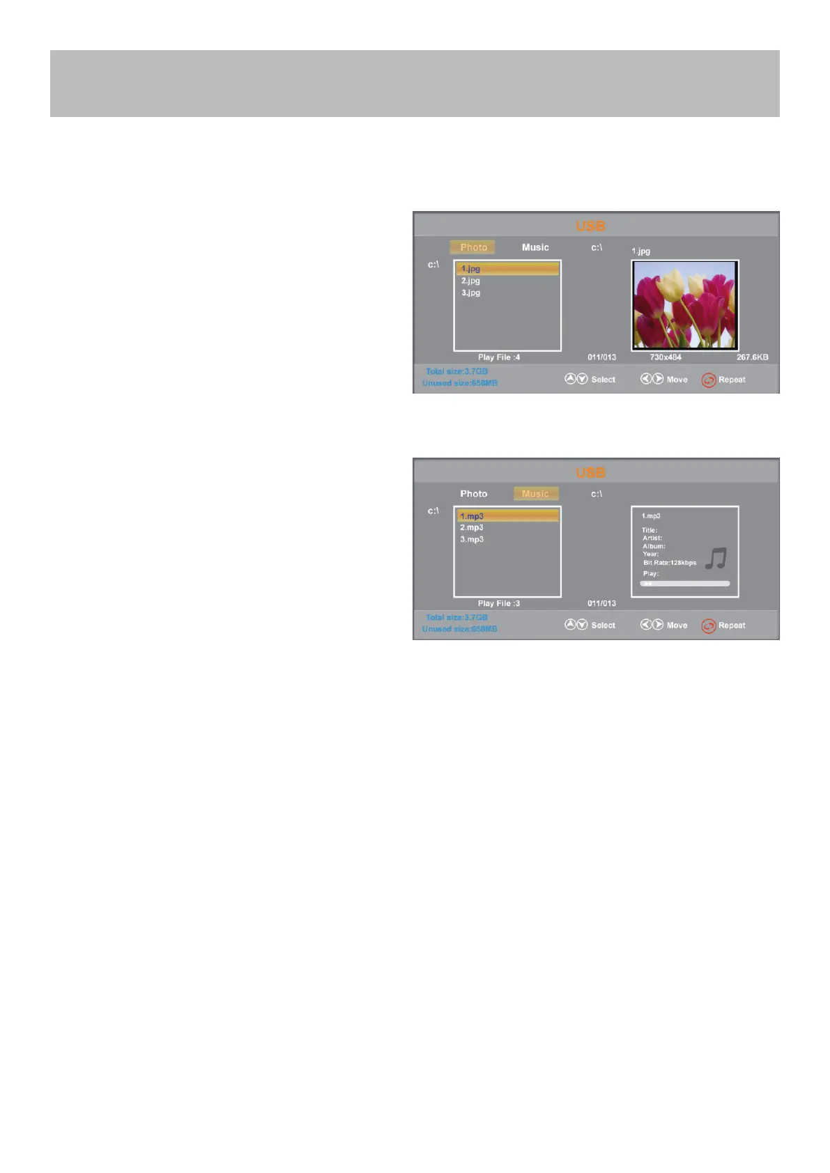 1. Press the INPUT button on the remote control to display the Input menu. Use the ▲▼ buttons to select USB.