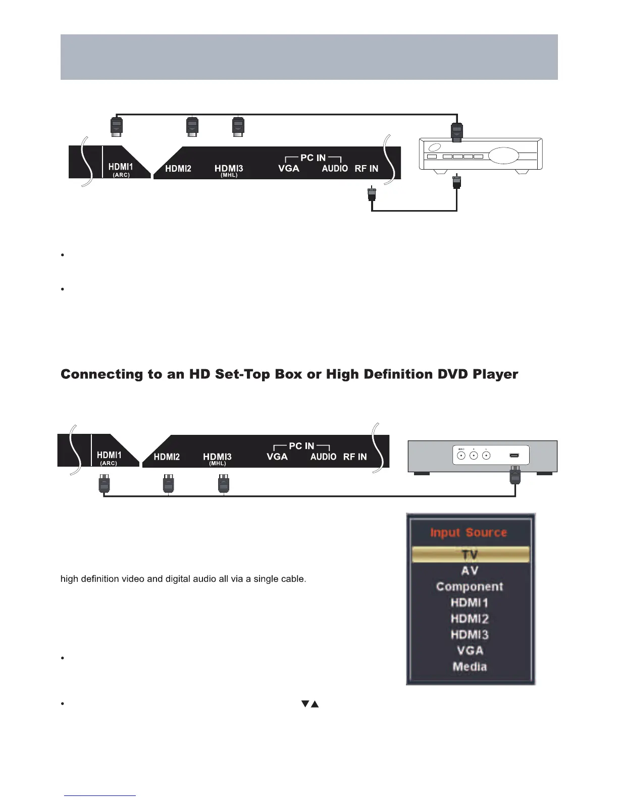 There are three (3) HDMI inputs available for use with HD set top boxes,