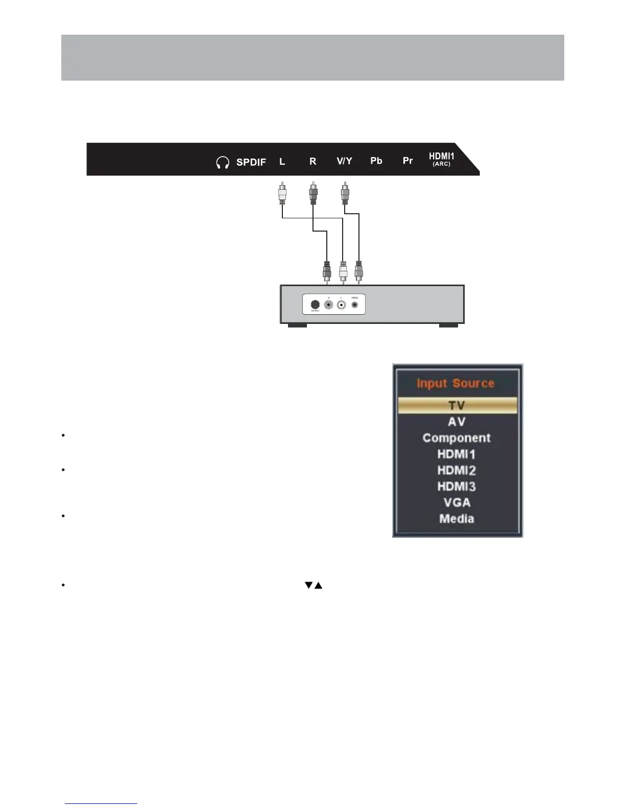 external A / V equipment (i.e.: DVD player, set top box) to AV input