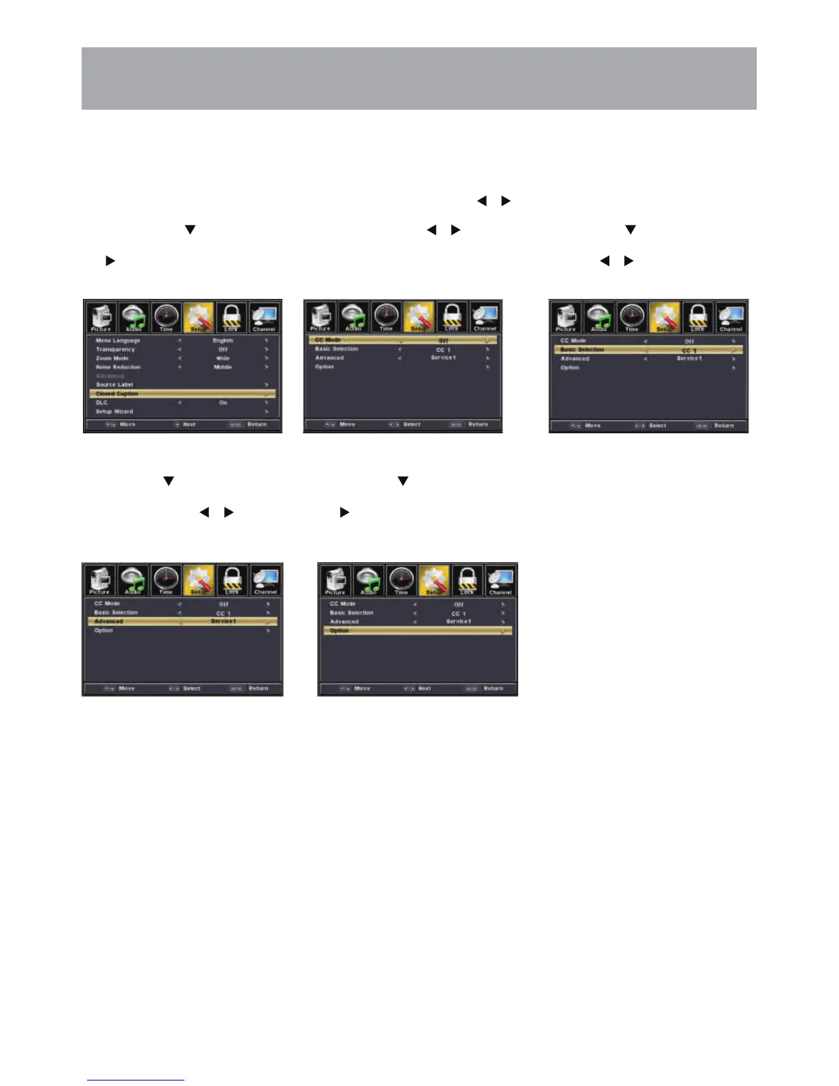 highlight Closed Caption then press