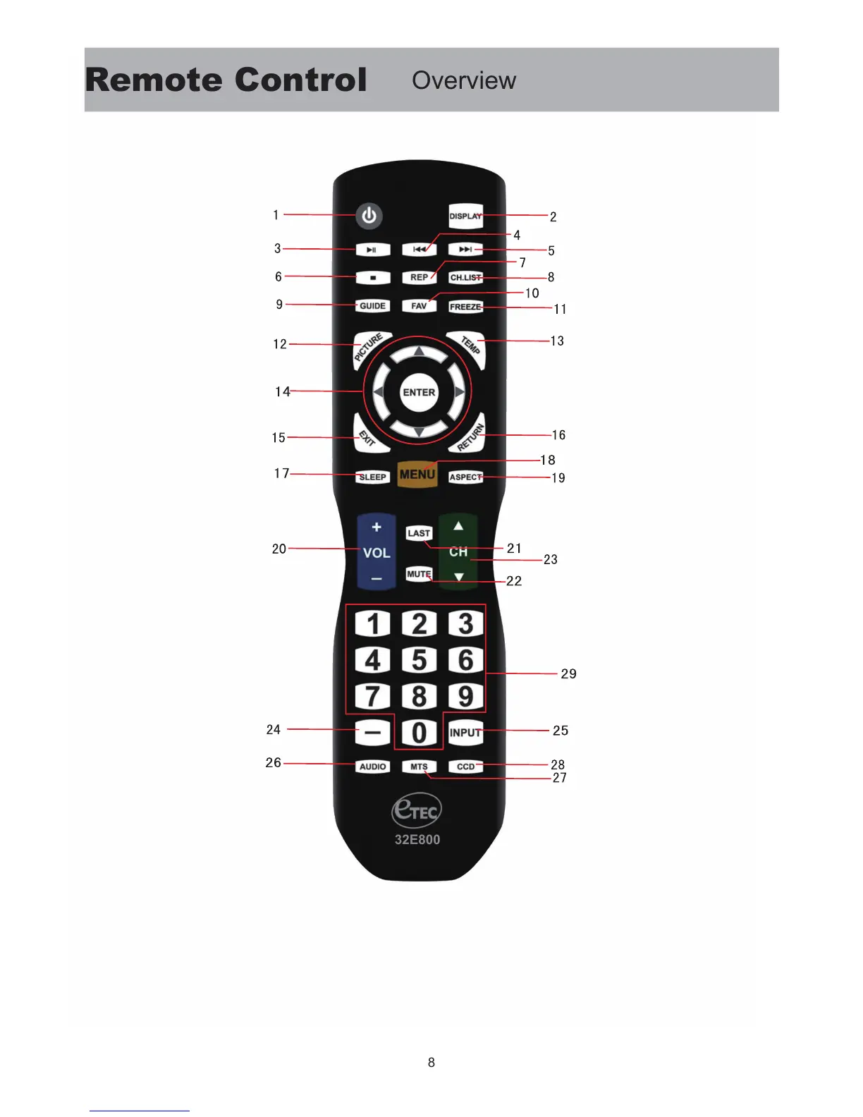 Etec 32E800 - Remote Control Overview; Remote Diagram