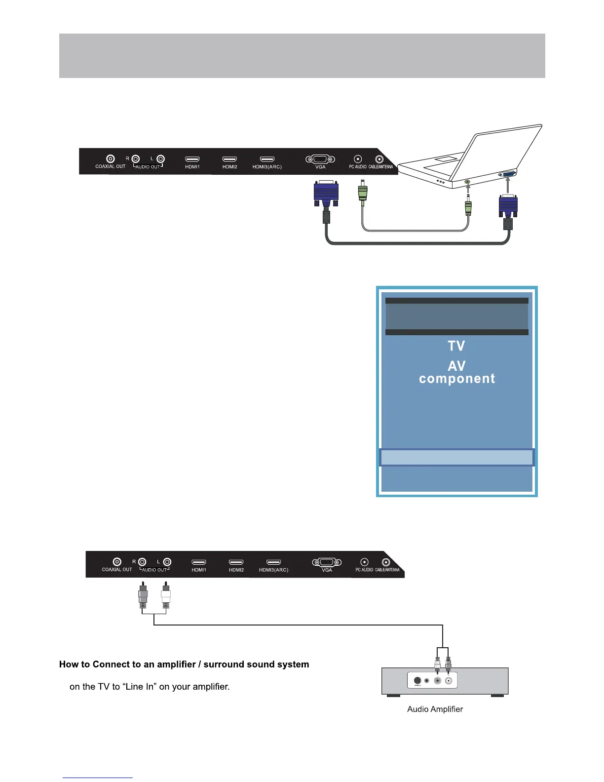 NOTE: The TV’s speakers will still output audio. You can turn the