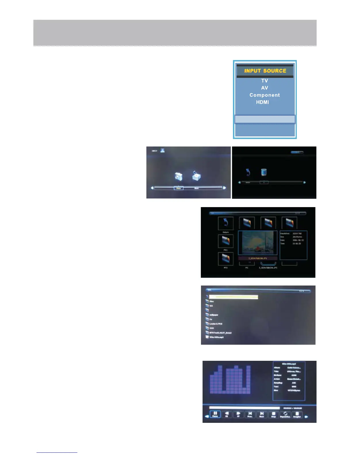 • Press the ◄ / ► buttons to select Music, and