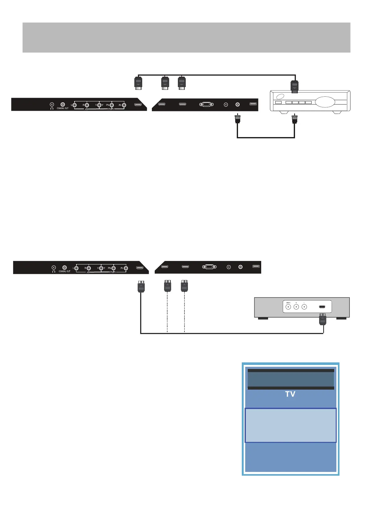 • On the back of your device, connect the HDMI cable from HDMI out on device to HDMI in on the panel.