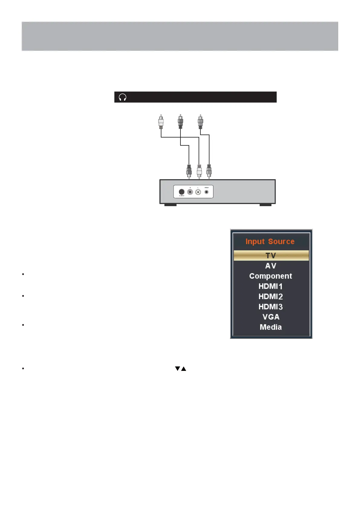 external A / V equipment (i.e.: DVD player, set top box) to AV input
