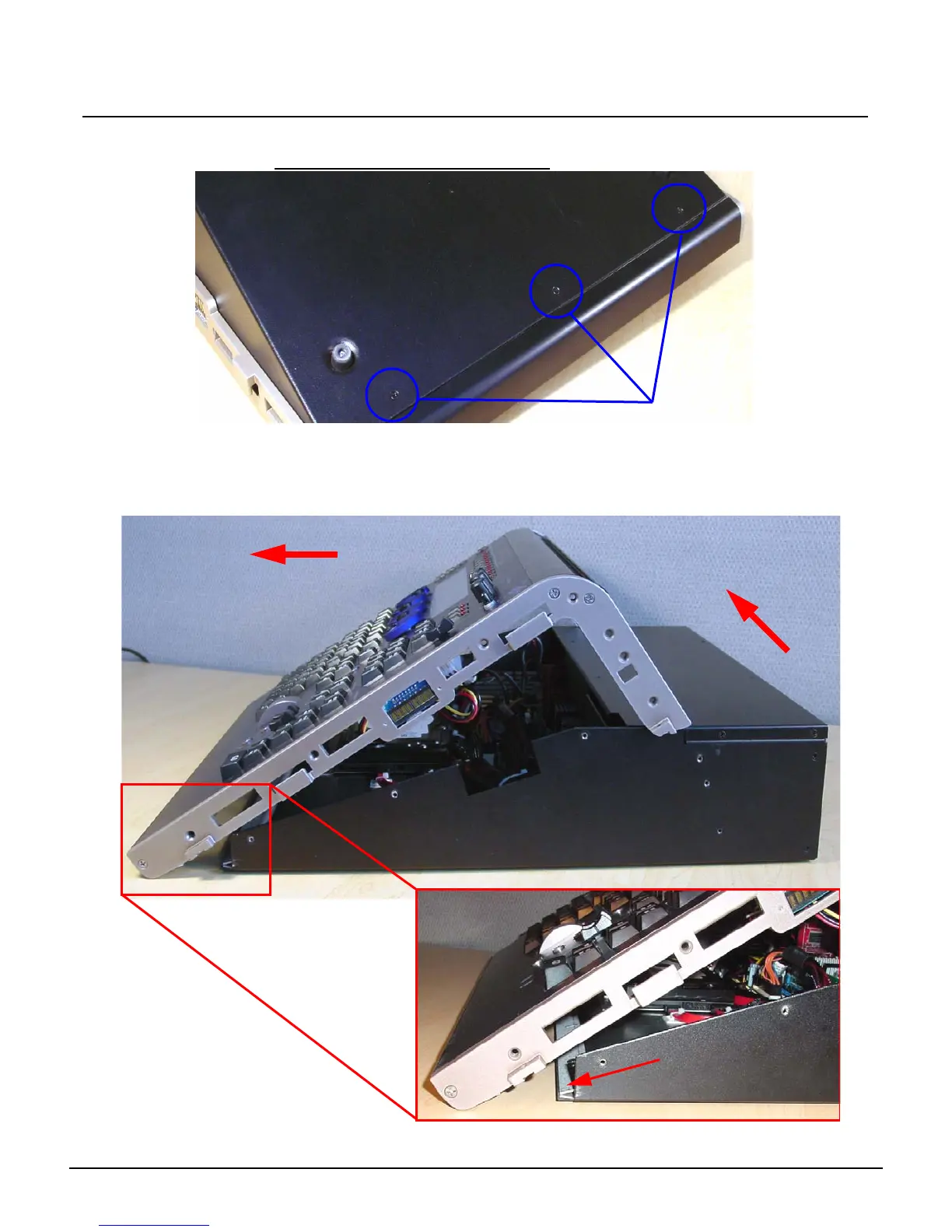 Step 4: Carefully flip over the console and loosen the 3 screws in blue below: