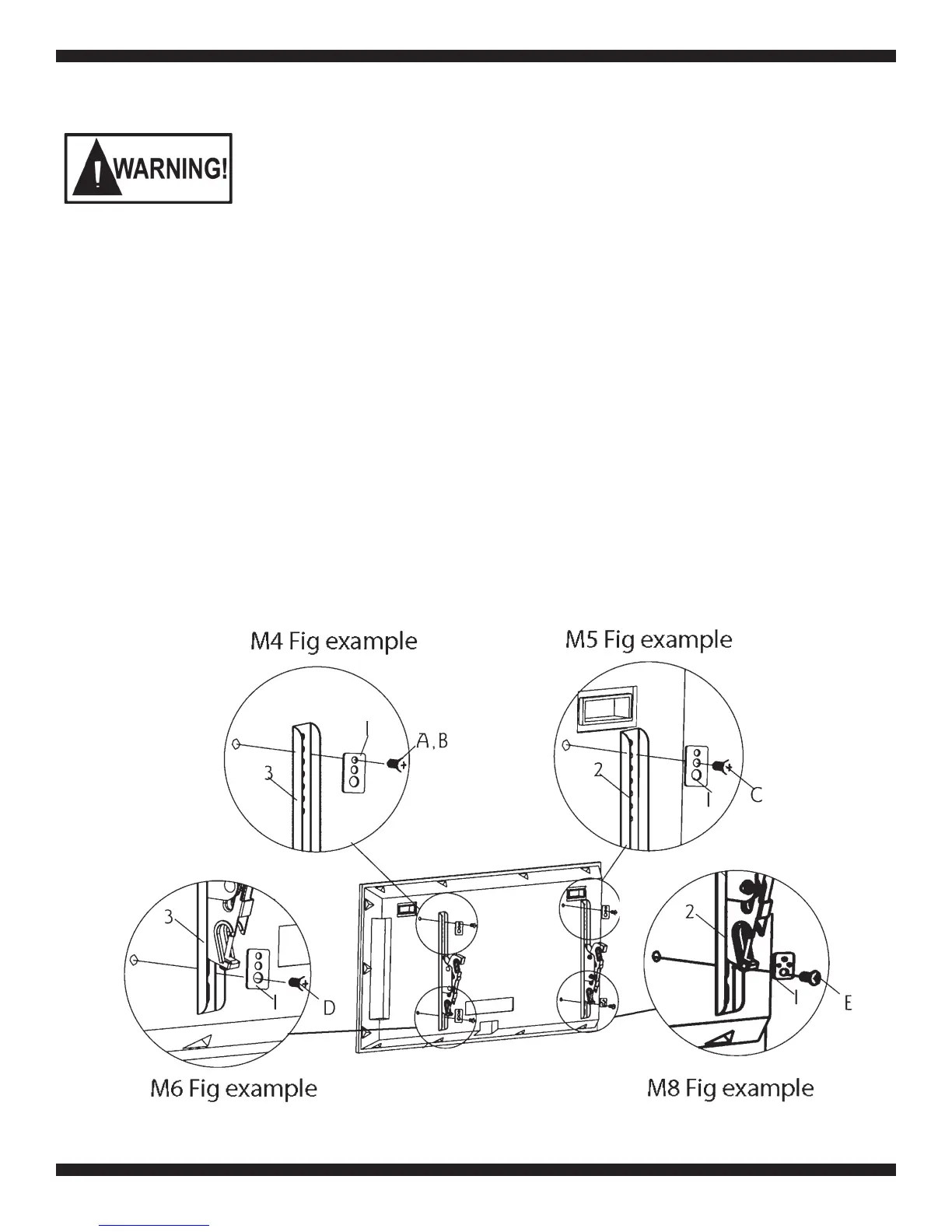 Check your TV manual to conrm the required bolt diameter according to the size, depth, and position