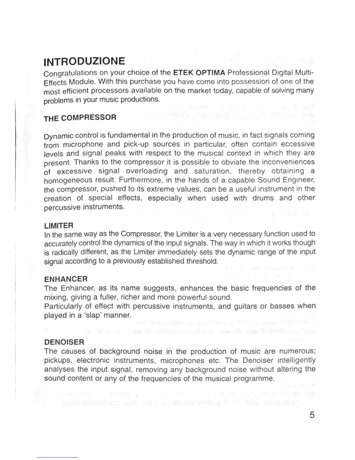 ETEK Optima - Introduzione; The Compressor