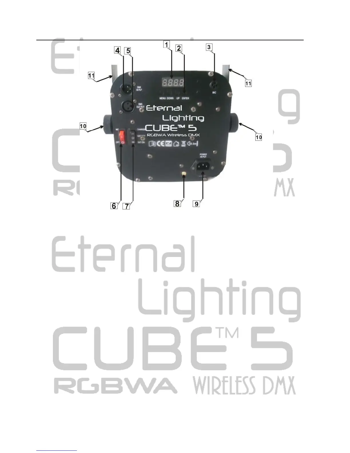 (5) DMX-Out socket (6) Power switch