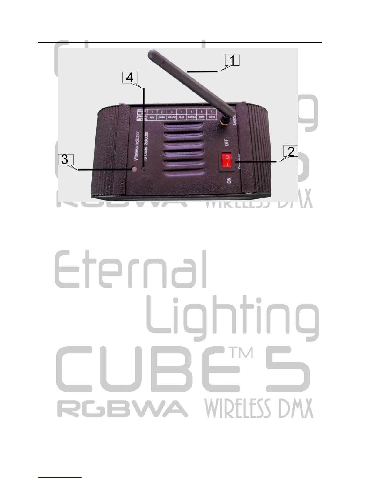 (3) Wireless indicator (4)ID code selector