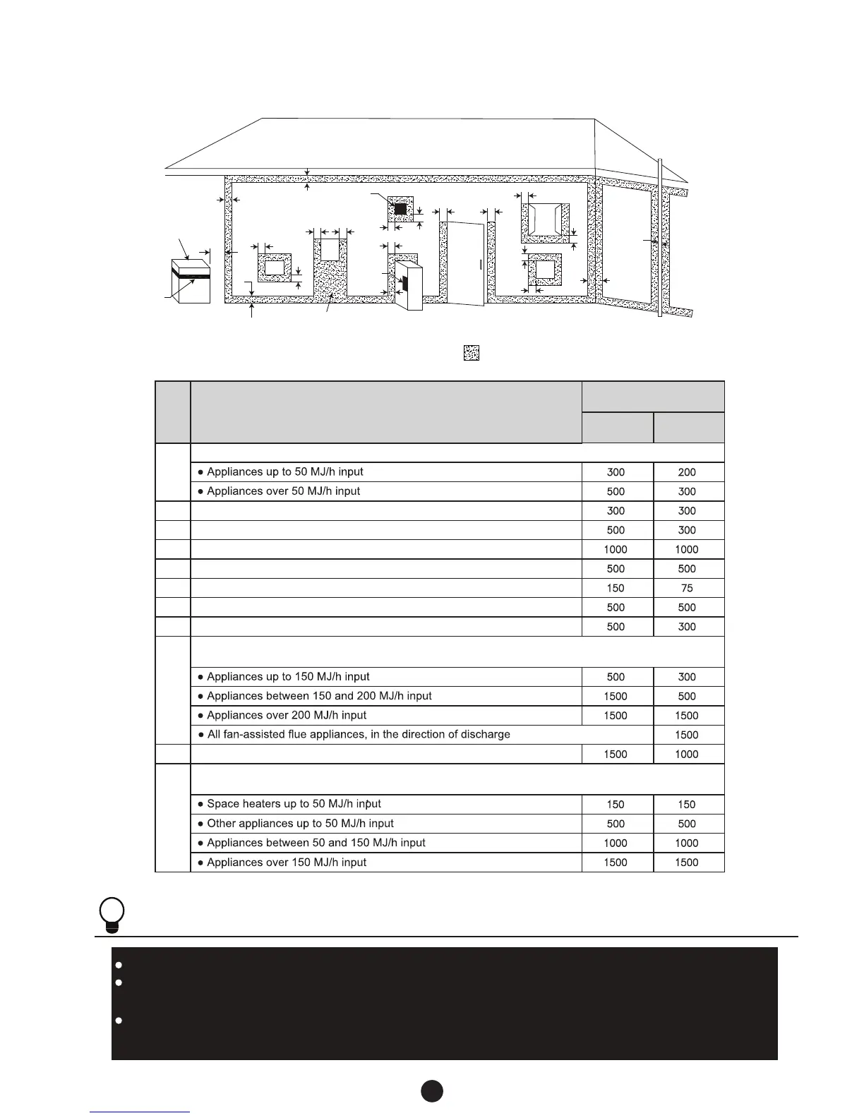 See Appendix J, Figures J2(a) and J3(a), for clearances required from a flue terminal to an