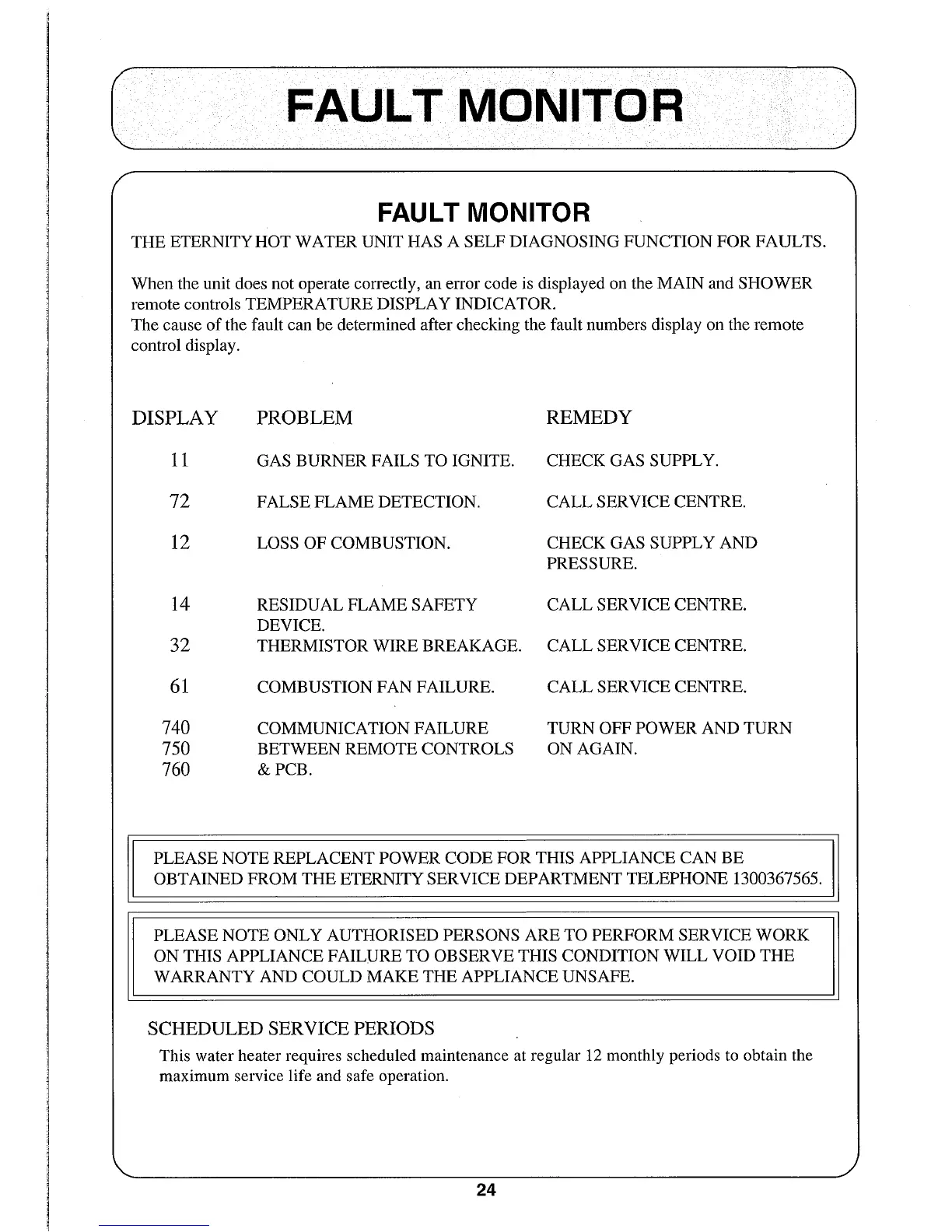 This water heater requires scheduled maintenance at regular 12 monthly periods to obtain the