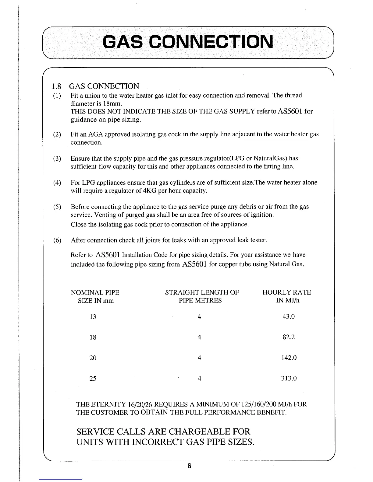 For LPG appliances ensure that gas cylinders are of sufficient size.The water heater alone