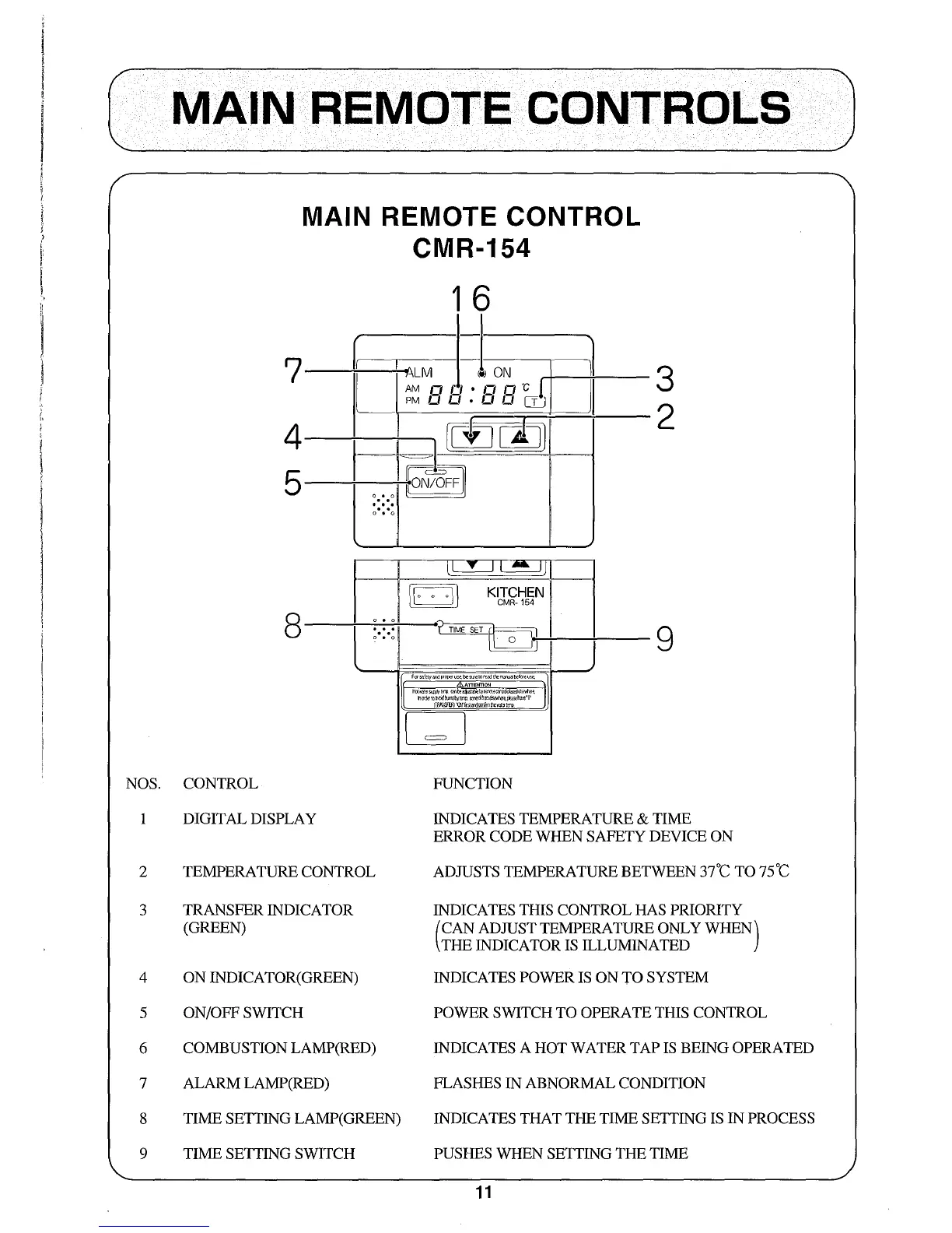 MAIN REMOTE CONTROLS