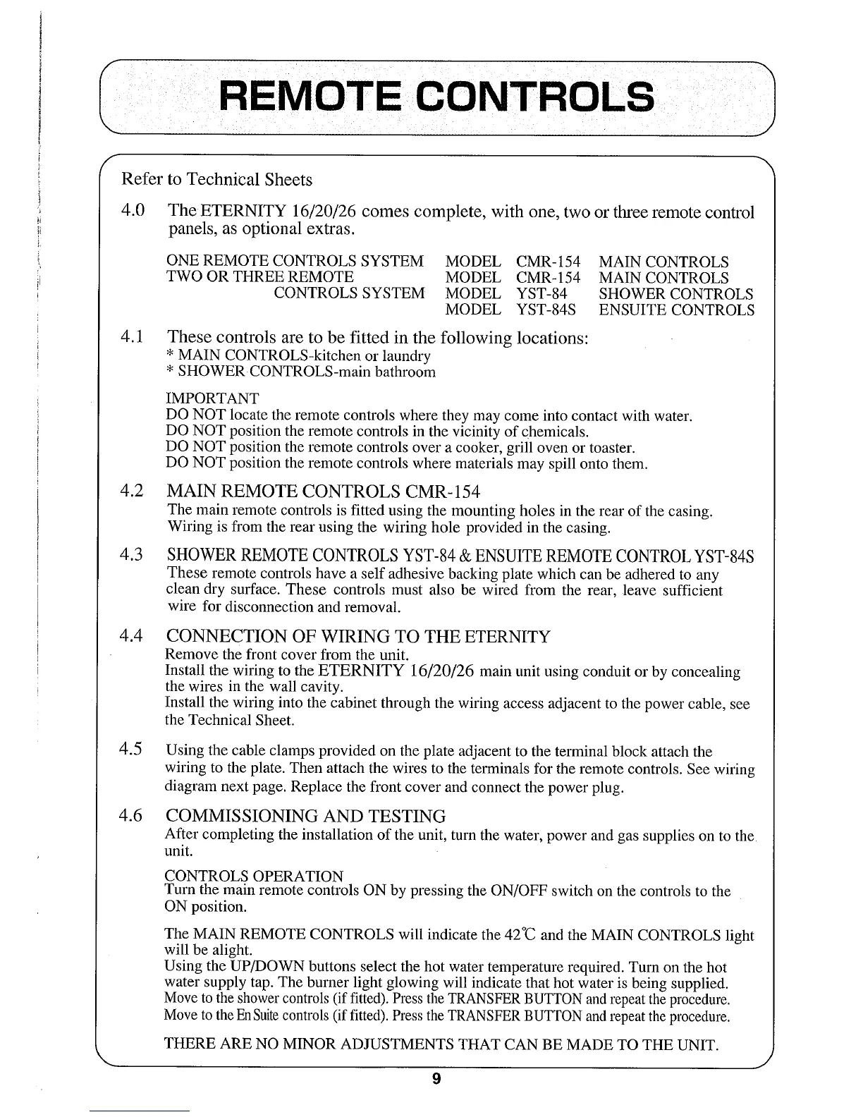 4.3 SHOWER REMOTE CONTROLS YST-84 & ENSUITE REMOTE CONTROL YST-84S