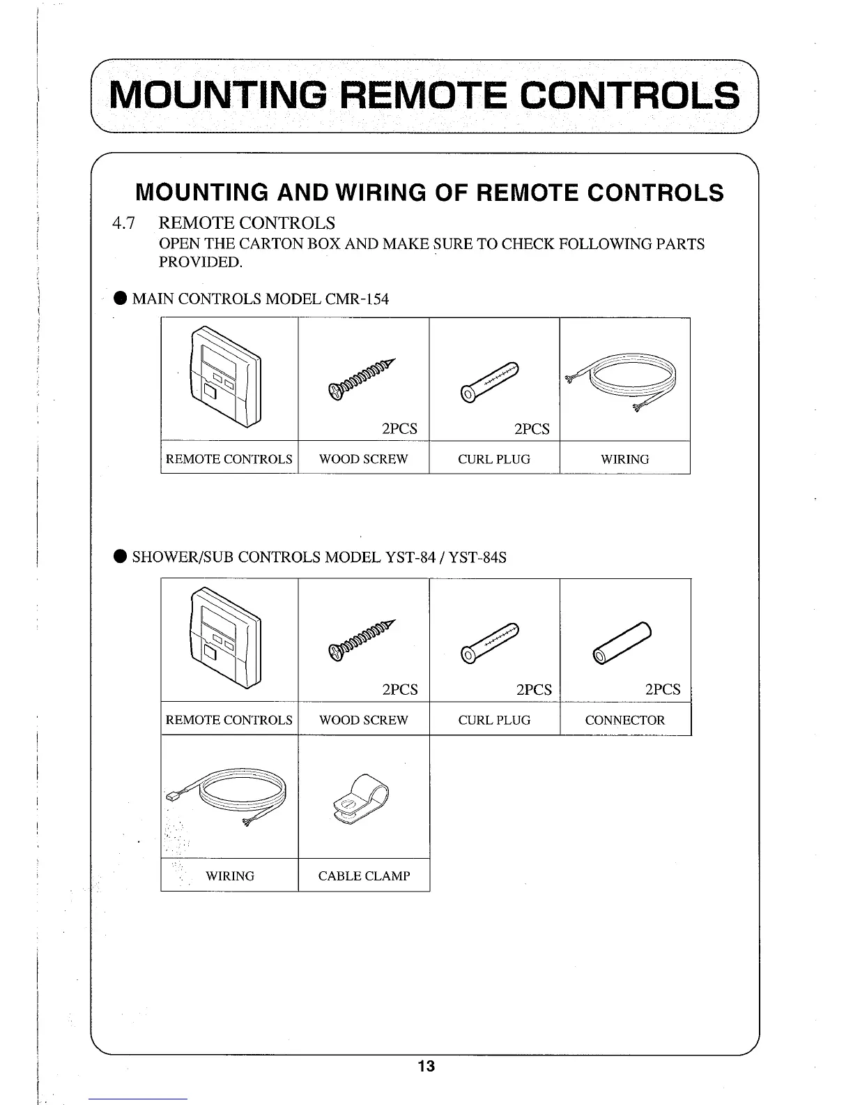 MOUNTING AND WIRING OF REMOTE CONTROLS