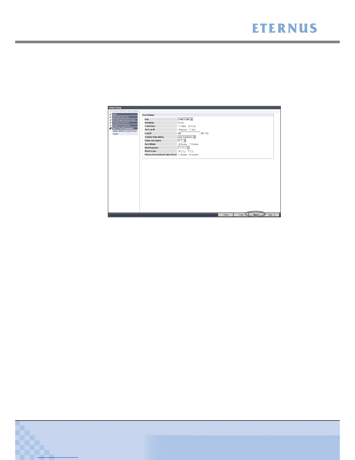 On the [Set FC Port Parameters] screen, set the information (detailed Fibre Channel port