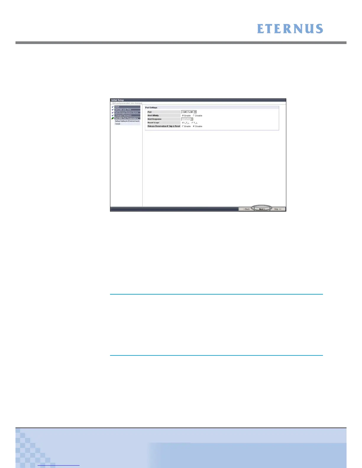 On the [Set SAS Port Parameters] screen, set the information for the connection (detailed