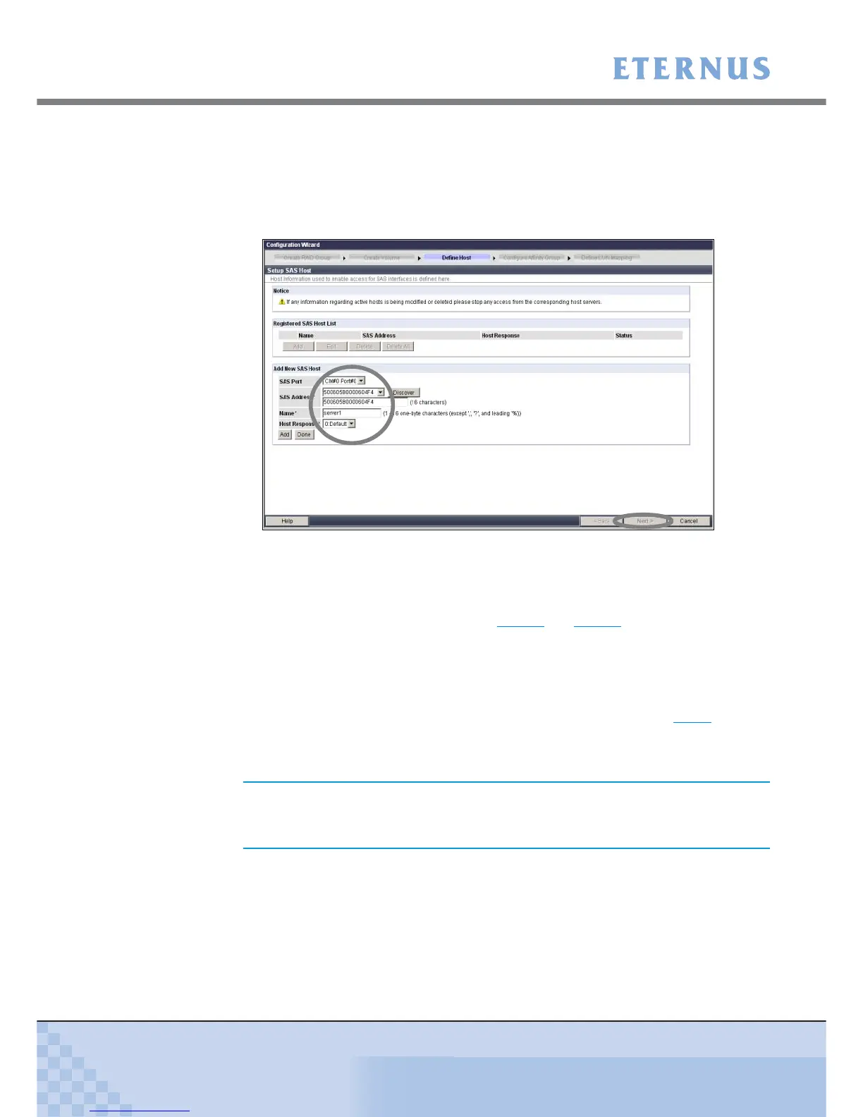 (1)Click the [Add] button on the [Setup SAS Host] screen