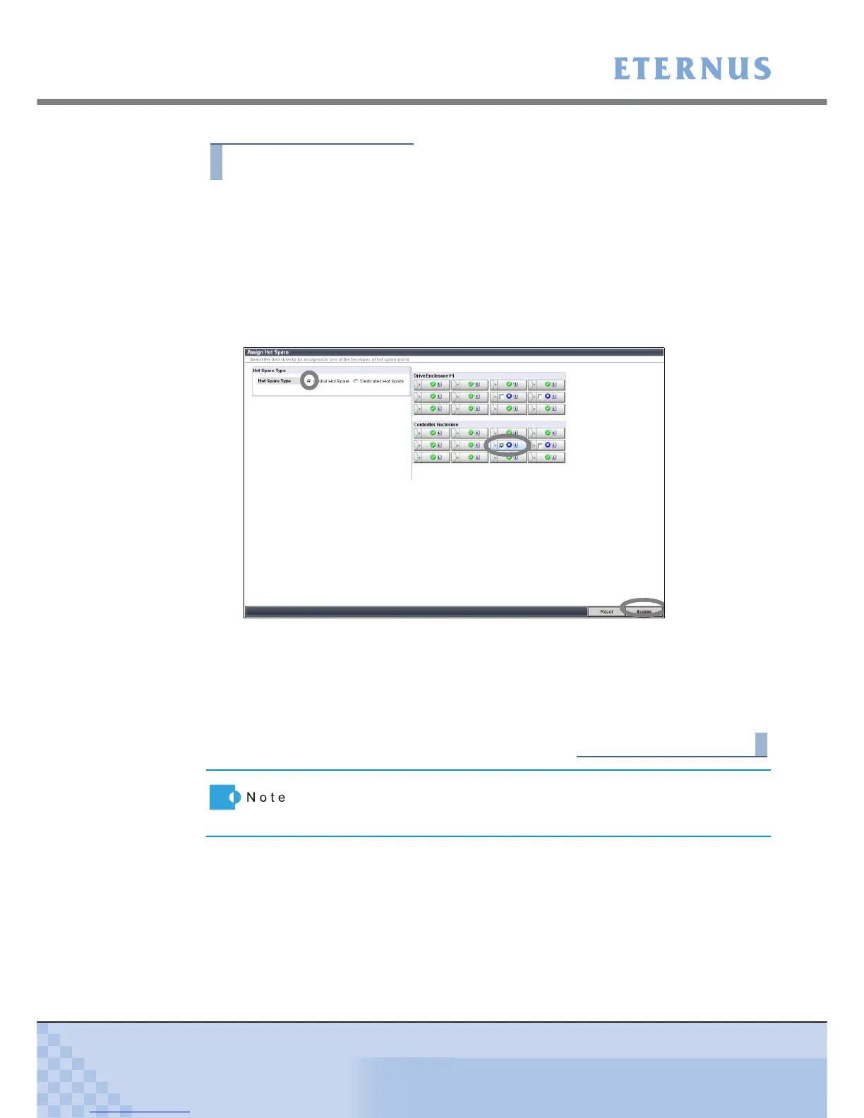 1 In the GUI screen, click [Assign Hot Spare] under the [RAID Group