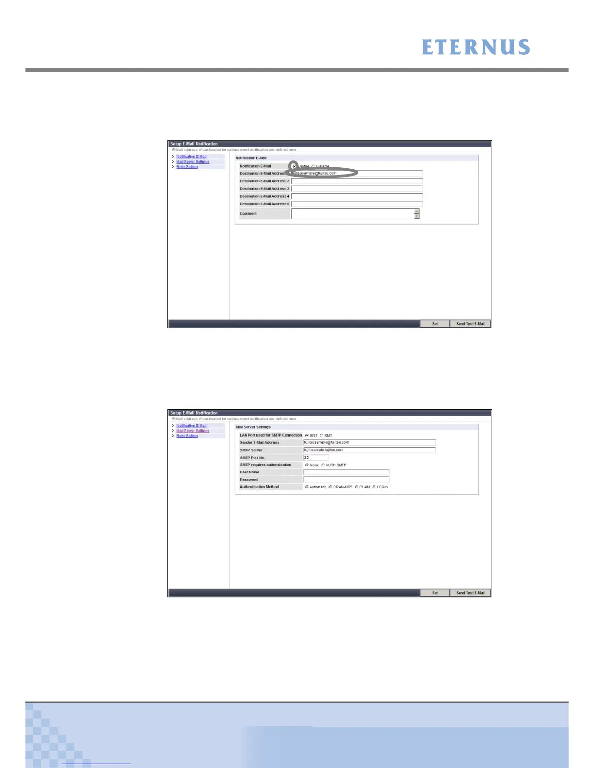 • Select "Enable" in "Notification E-Mail".