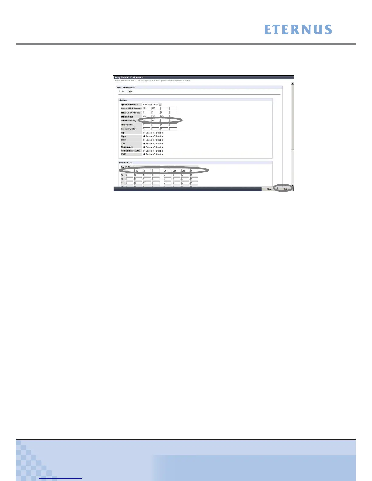 Enter the default gateway and any "Allowed IP List" devices.