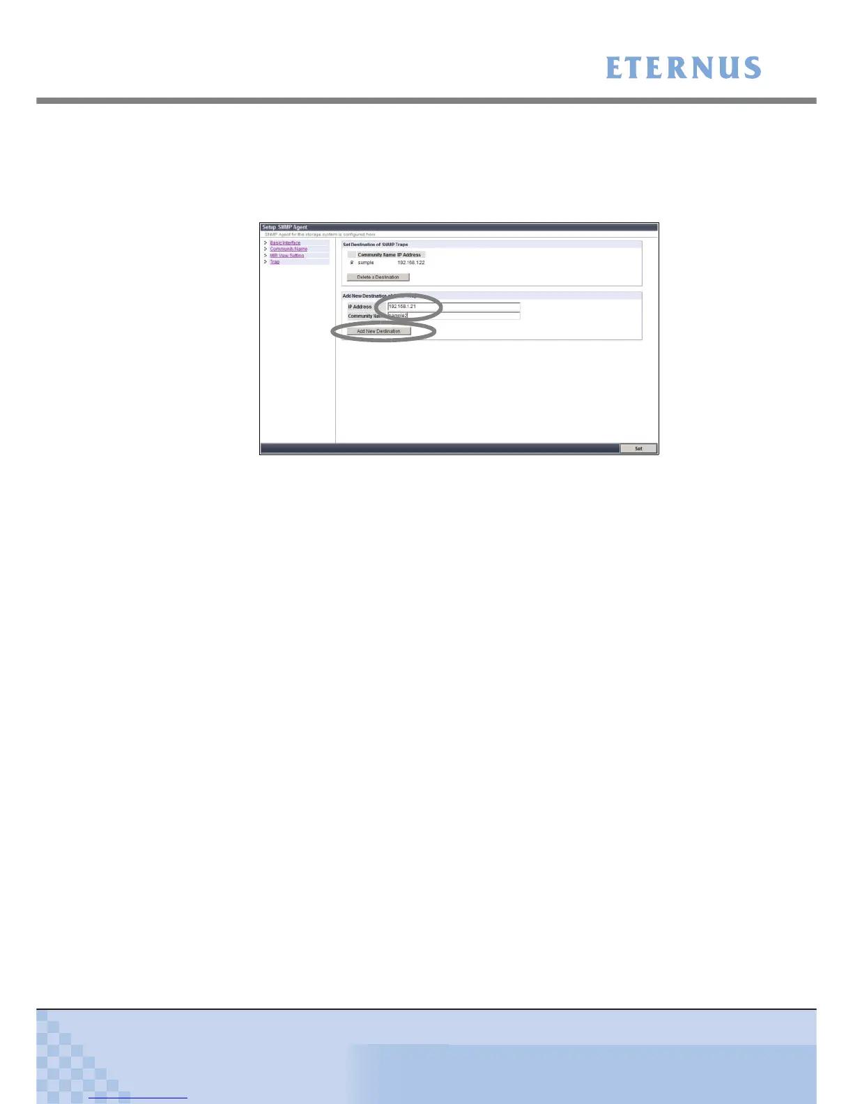 The new destination for the SNMP is added in the "Set Destination of SNMP Traps"