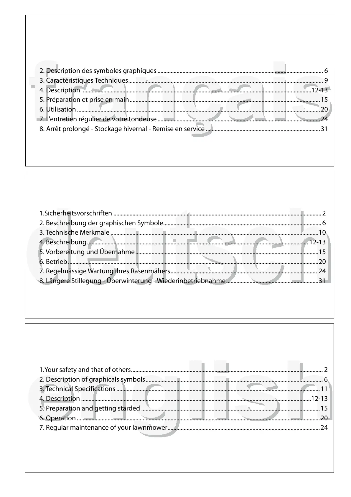 7. Regular maintenance of your lawnmower ........................................................................................................24