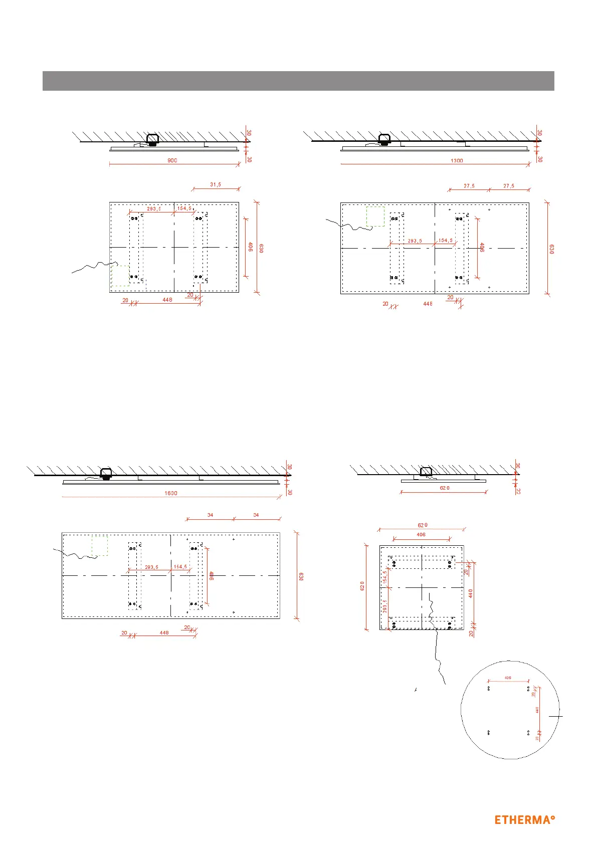 HOLE SPACING FOR DRILLING – CEILING MOUNTING