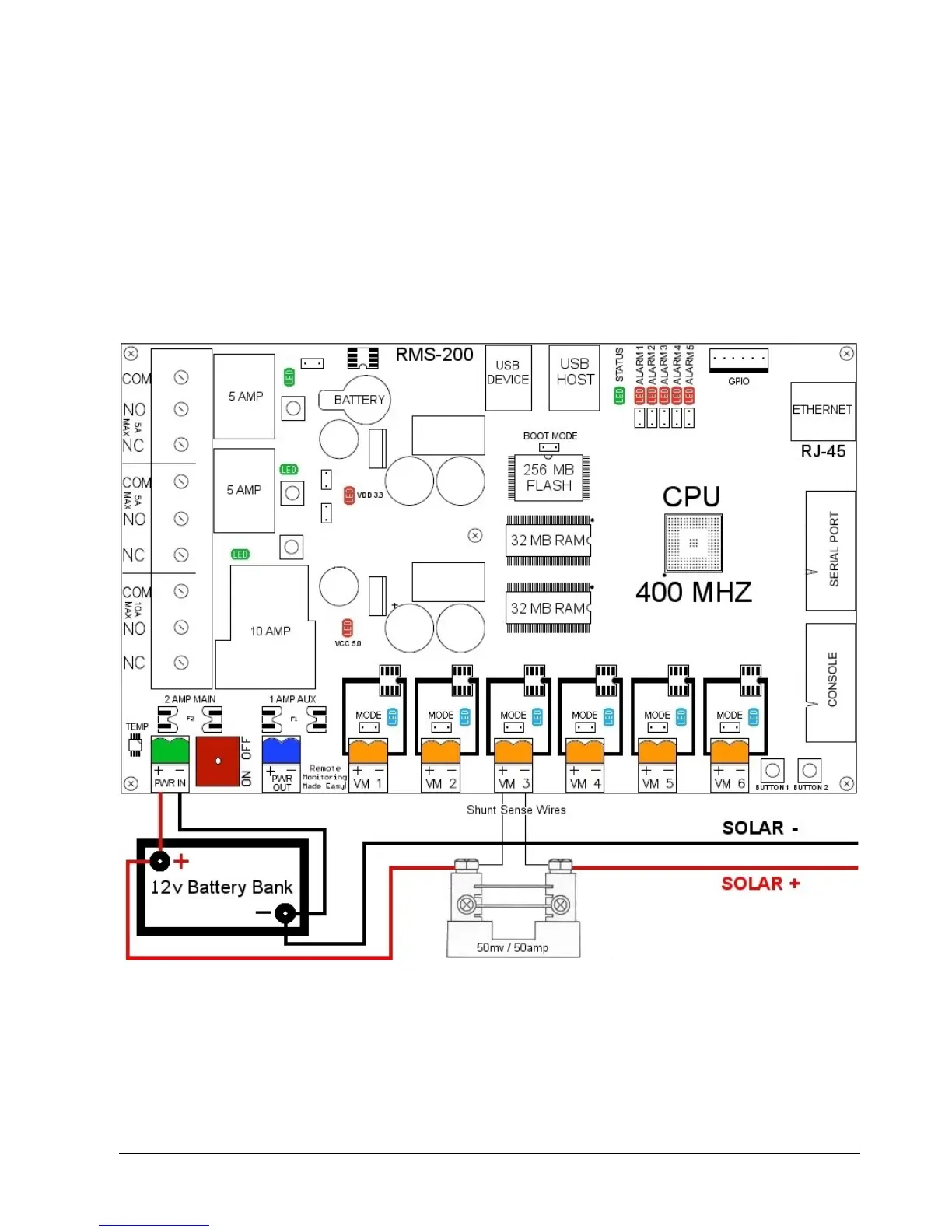 Below is an example diagram of how to use RMS-200 with a shunt to measure charging from