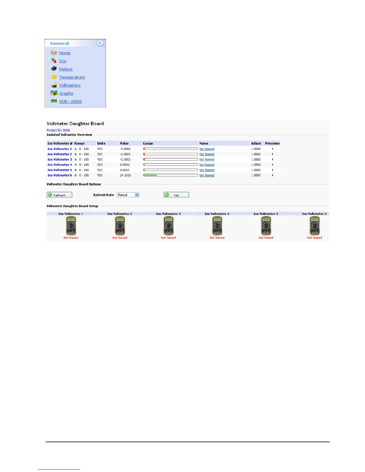 indicates negative voltage. To refresh the web page you can press the Refresh button. To