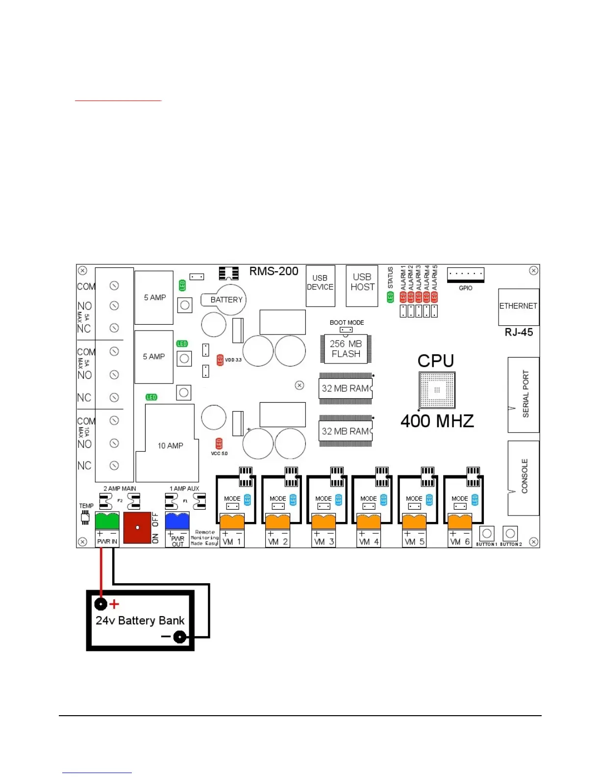 RMS-200 board. Turn the device on with the on/off switch. It takes the RMS-200 board