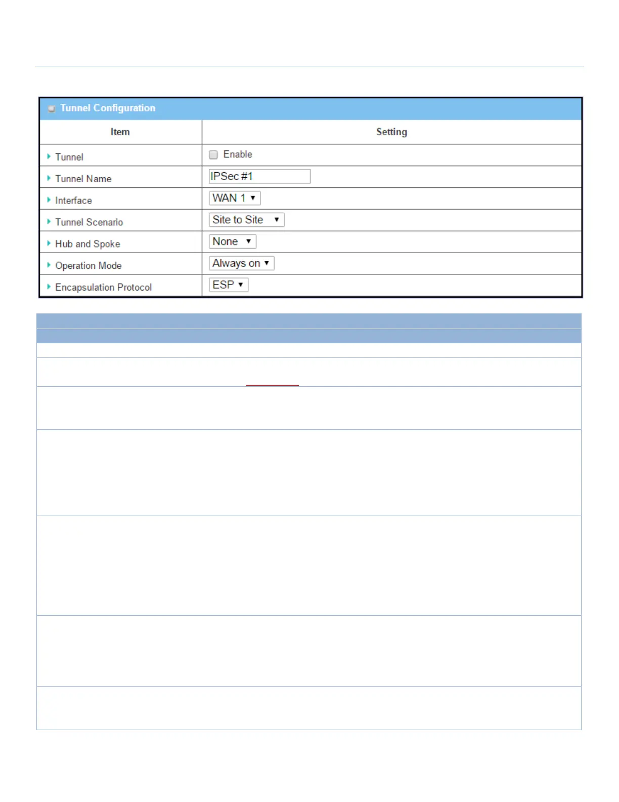 Note: Hub and Spoke are available only for Site-to-Site VPN tunneling specified