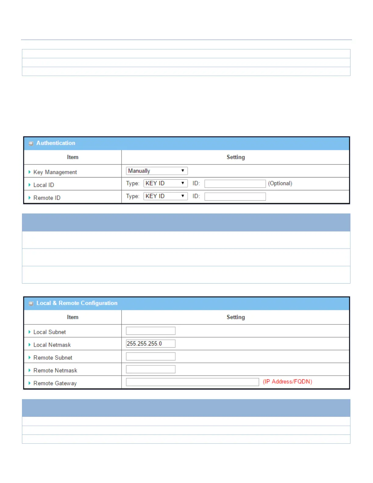 Window, a series of configuration windows for Manual IPsec Tunnel configuration will appear. The