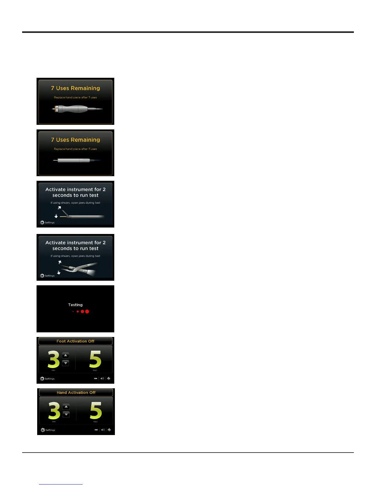 Activate instrument for 2 seconds to run test� If using shears, open jaws during test�