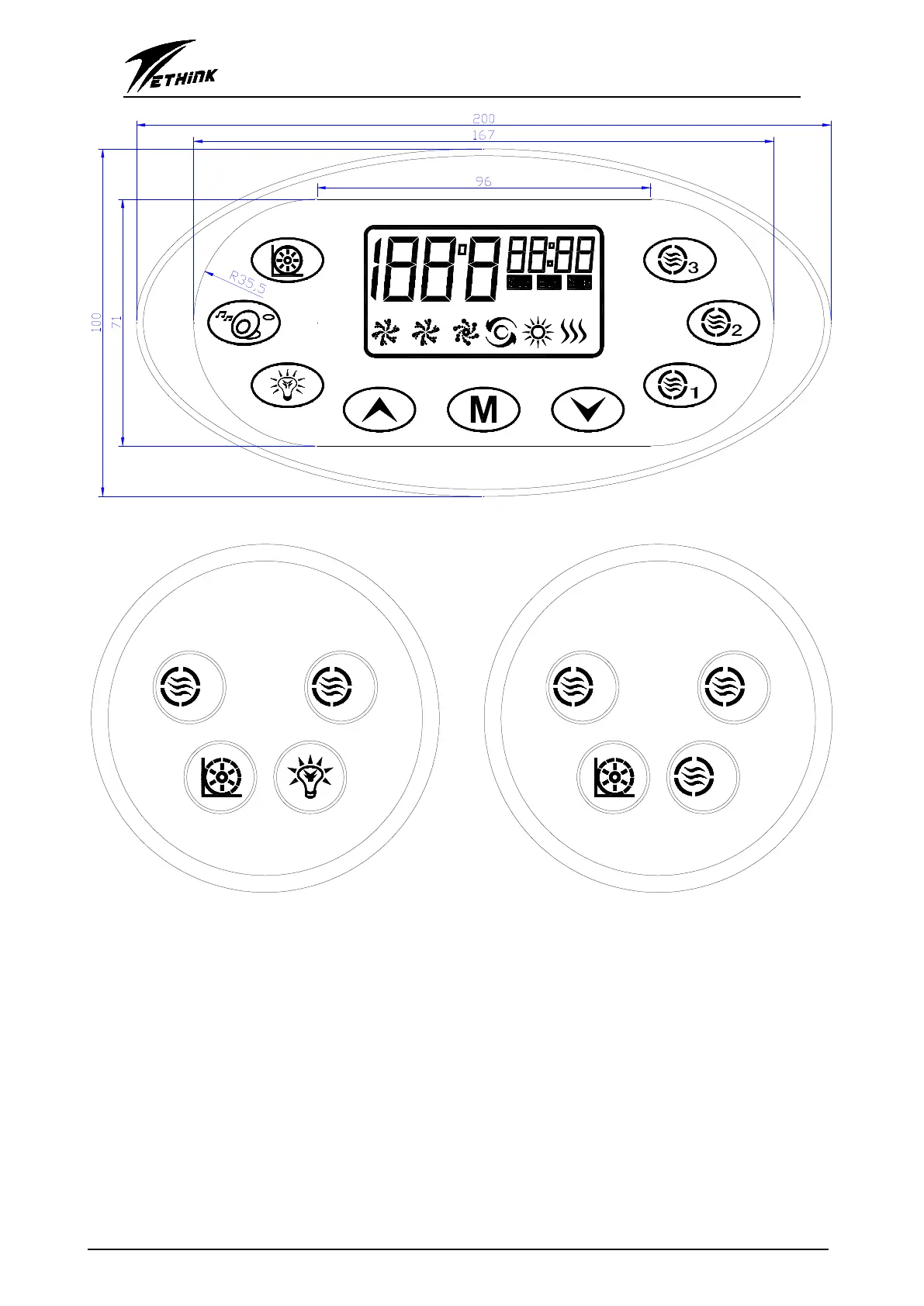 8. Single color back lighting 7/8 keys control panel or double color back lighting 8/9 keys control
