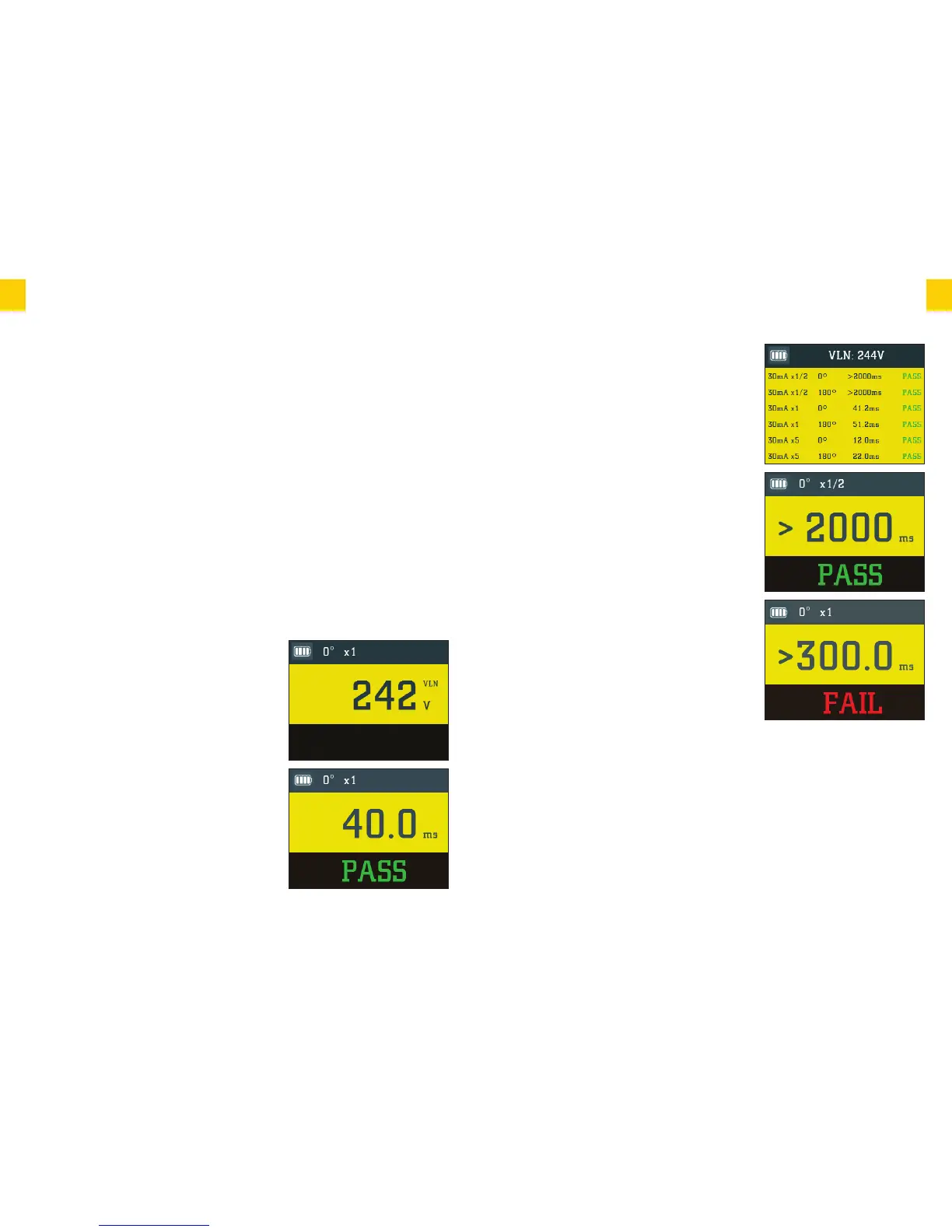 if RCD trips within 300ms. After displaying the result for a few seconds the tester will switch to